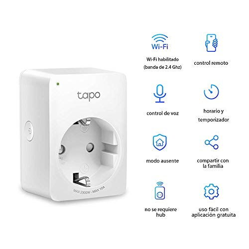 TP-Link TAPO P100 - Mini Enchufe Inteligente Wi-Fi, óptimo para programar el encendido/apagado y ahorrar energía, no necesita HUB, compatible con Alexa y Google Home