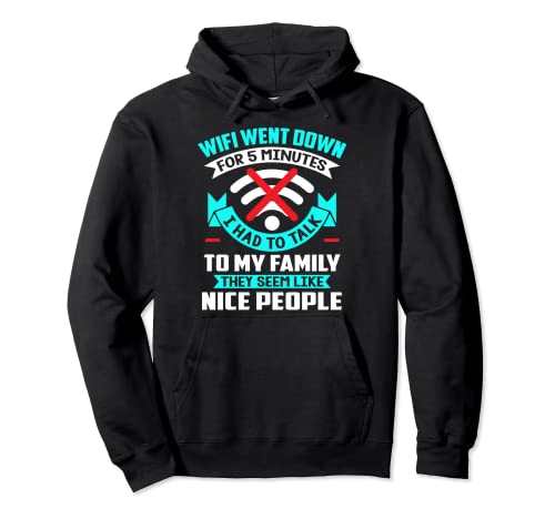 - ¿Se pasa todo el día delante del ordenador? ¿Pasa poco o nada de tiempo con su familia? Si es así, entonces nuestro diseño divertido y sarcástico de "El Wi-Fi se cayó durante cinco minutos y tuve que hablar con mi familia" es perfecto para ti y para gente