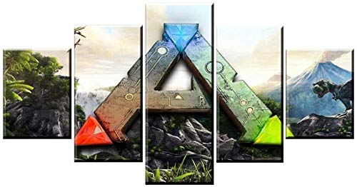 bnkrtopsu 5 Cuadro en Lienzo 5 Fotos Juntas en una Sala de Estar Dormitorio Creativo murales Decorativos y Carteles((Cuadro/100x55cm) Póster del Juego Ark: Survival Evolution