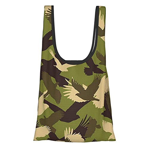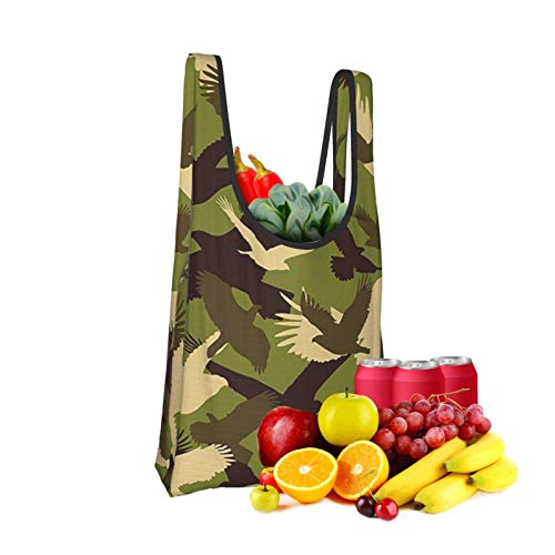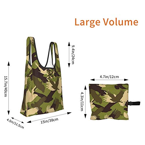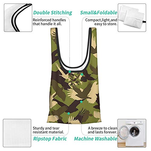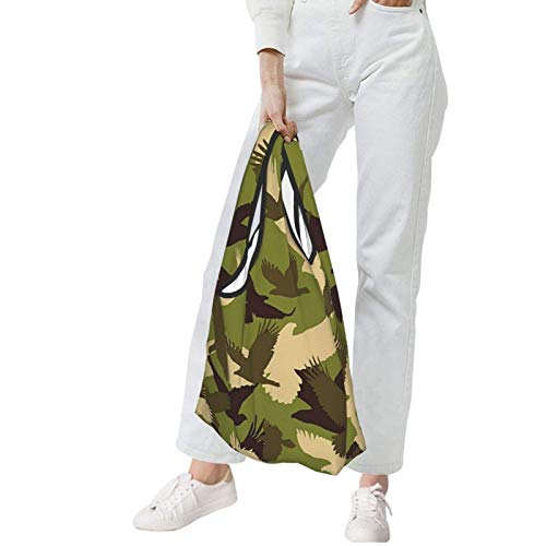 Camo Eagle Silhouettes Flying Open Wings Falcon Hawk Armed Forces Theme Es Army Green Dark Brown Cream Bolsas de Compras Reutilizables Ecológicas Plegables