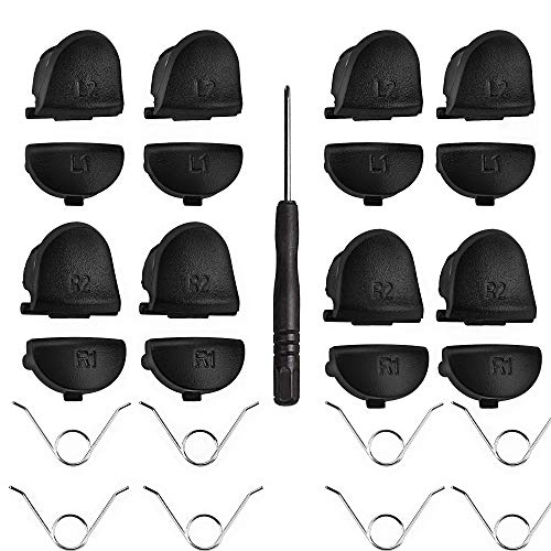 4 Pack Botones Mando PS4 Para Play Station 4 Controlador PS4 L1 R1 + L2 R2 Botones de Disparador Piezas de Repuesto de Controlador Para Dualshock 4 Controlador (Negro)
