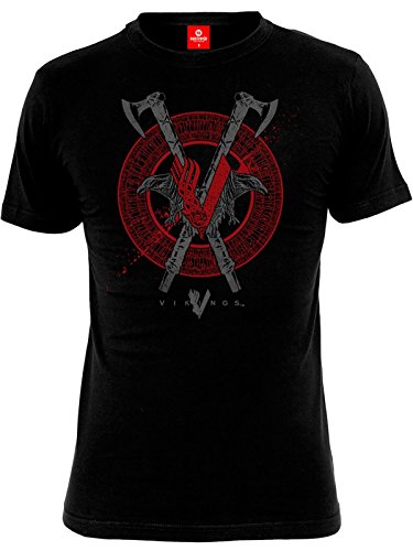 Vikings Axe & Raven Hombre Camiseta Negro XL, 100% algodón, Regular