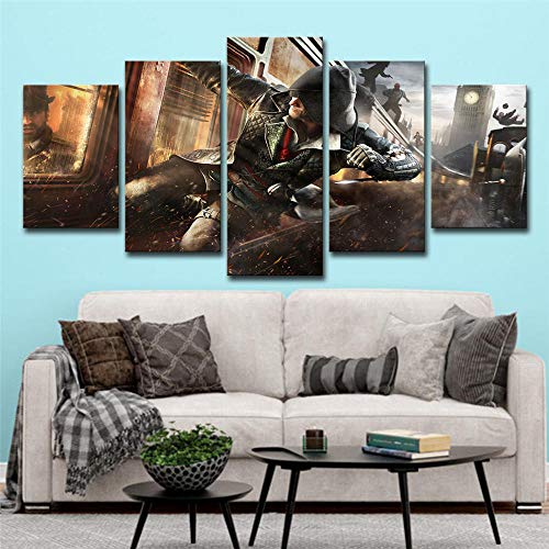 WLHZNB Impresiones sobre Lienzo Assassin'S Creed Syndicate Game Character 5 Piezas Impresión En HD Pintura sobre Lienzo Artista Moderna Residencia Decoración Tamañoa