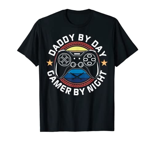 - Daddy by Day Gamer by Night Vintage PC Video Game Gaming Dad Design shows a vintage retro sunset graphic graphic of a video game console controller. Perfect Father's day gift for any gamer dad who loves to play video games.