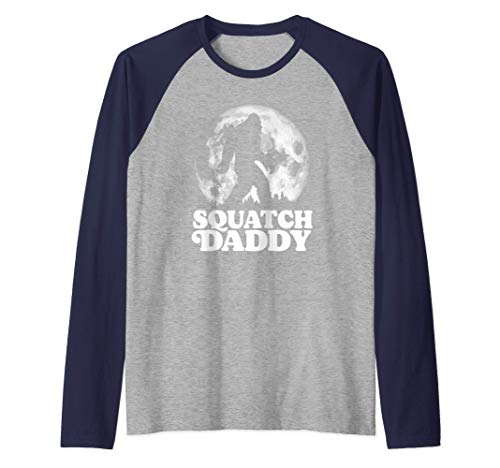 Squatch Daddy! Funny Bigfoot at Night Moon Graphic Camiseta Manga Raglan