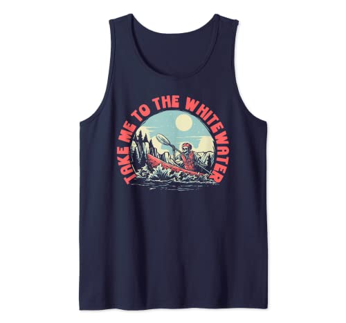Take Me To The Whitewater Paddling Skeleton Kayak at Night Camiseta sin Mangas