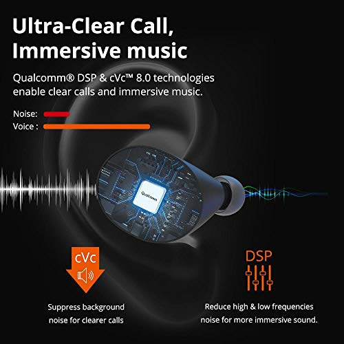 - 【Micrófono dual y Cancelación de Ruido cVc】El chip QCC3040 posee una aritmética de cancelación de ruido de orden superior para garantizar llamadas claras y una comunicación fluida sin interrupciones o desconexiones con micrófono dual en cada auricular y tecnología mejorada de cancelación de ruido cVc.