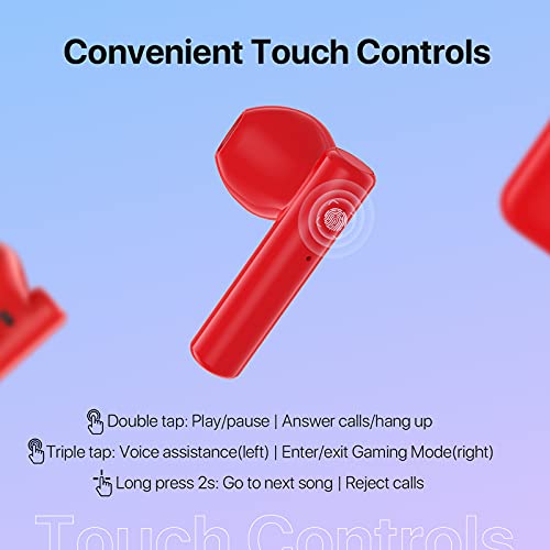 Auriculares Inalámbricos, UMIDIGI AirBuds U Auriculares Bluetooth 5.1, Auriculares Internos Control Táctil Wireless Earphones Deportivos Tiempo de Reproducción de 24h con Caja de Carga (Rojo)