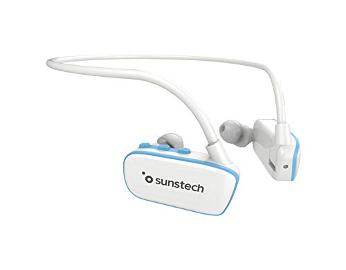 ARGOS Sunstech Reproductor MP3 8GB Sumergible Impermeable IPX8 Diseñado para el Deporte y la natación Batería Recargable 200mAh. Almohadillas terrestres y acuáticas Incluidas. Blanco - Azul.