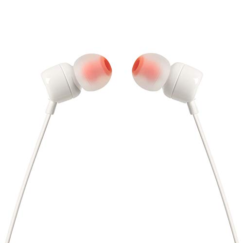 JBL T110 Auriculares In Ear con Pure Bass - Con manejo de un solo botón y micrófono, color blanco