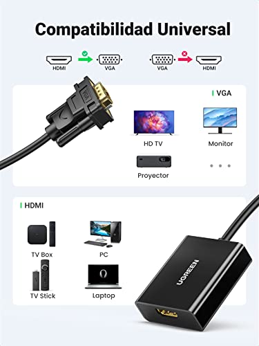 Adaptador HDMI a VGA para Chromecast, Ugreen HDMI Hembra a VGA Macho 1080P con Audio Compatible con Stick TV, Raspberry pi, Netflix, Webtv, MSN TV, Receptor TDT HD, Miracast