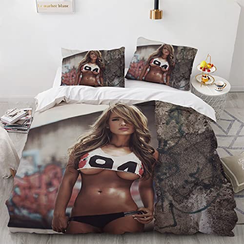 3D Print Anti-Wrinkle Anti-Fading Bedding Sexy Football Babe Hypoallergenic Duvet Cover Set Single Easy Care and Super Soft Hidden Zipper Quilt Cover with 2 Pillowcases