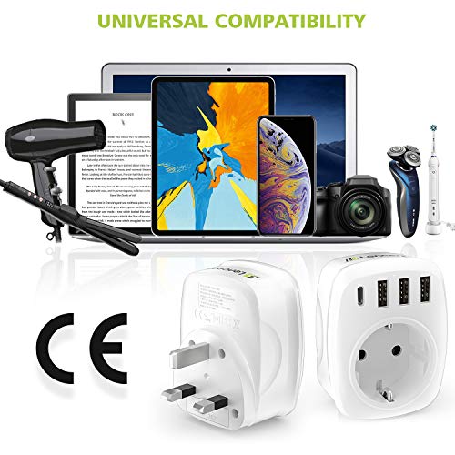 - SUMINISTRO DE CORRIENTE DE VIAJE: Disfruta de tus dispositivos electrónicos en Reino Unido y otras ciudades y países con enchufes tipo RU.