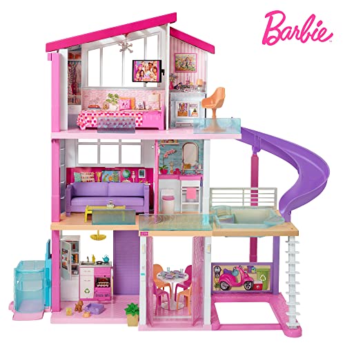 Barbie Casa de MuƱecas Dreamhouse - Con Piscina, TobogƔn y Ascensor - Luces y Sonido - 75+ Piezas - 104 x 109 cm - Regalo para NiƱos de 3-7 AƱos