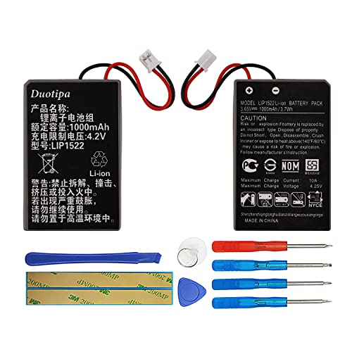 - [Qué es esto] - Nueva batería de iones de litio de 3.7V y 1500mAh de repuesto para el controlador PS4 V1-3. La batería de terceros tiene un 50% más de energía que la batería original de Sony. Intercambiable con el LIP1522 original con conector grande que se encuentra en la serie DualShock 4 CUH-ZCT1. Cumpla con el estándar de Sony y con el módulo de circuito de protección incorporado PMC para evitar sobrecarga, sobredescarga y cortocircuito. Kit de herramientas de reparación necesario incluido