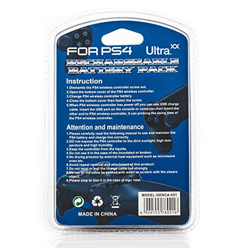- DOBLA la capacidad de la batería original de Sony: la primera batería de polímero de litio de alto rendimiento de 2.000mAh, especial para controladores de PS4.