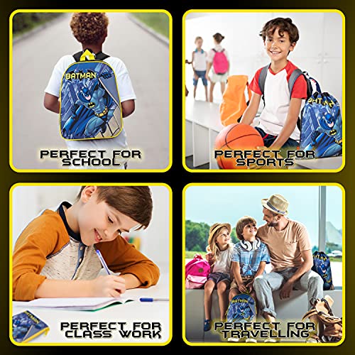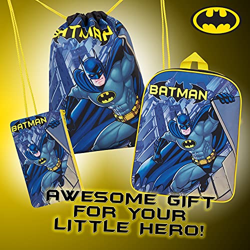 - MOCHILA BATMAN--- Os presentamos este pack de mochilas infantiles de Batman, el famoso superhéroe de DC. El juego de mochilas pequeñas está compuesto por una mochila infantil, una bolsa para niños de tela y un estuche pequeño. Todos ellos contienen un fantástico diseño de Batman con su famoso símbolo. ¡A los niños les encantará!