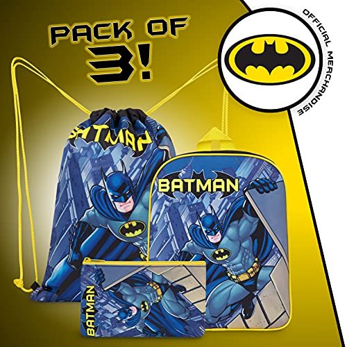 DC Comics Mochila Niño De Batman, Set De Mochilas Infantiles Con Estuche Escolar Y Mochila Saco