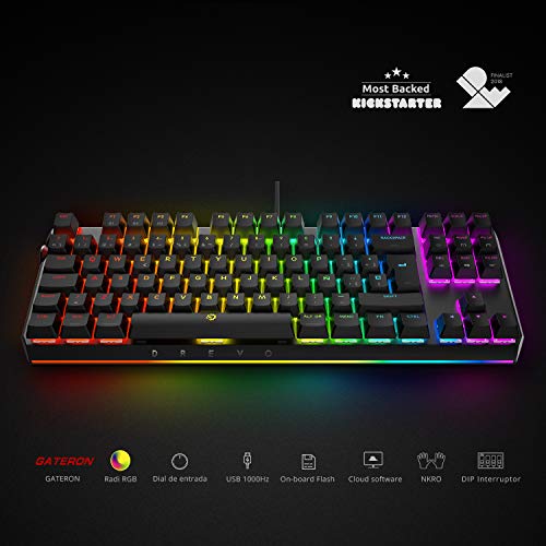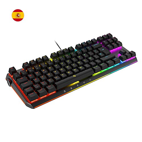 DREVO BladeMaster TE Teclado Mecánico Gaming Radi RGB Retroiluminado, USB con Cable, Genius Knob Programable-88K Español Layout [Táctil Clicky Gateron Interruptor Azul]