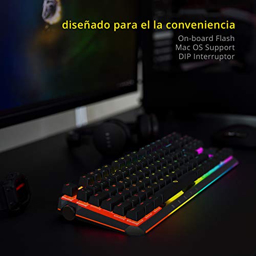 - Un paso adelante: potente procesador de 75 MHz Cortex con tasa de sondeo de 1ms, lo que aumenta su velocidad de respuesta hasta 10% y la memoria integrada de 16MB garantiza que guarde 3 configuradores individuales en el teclado
