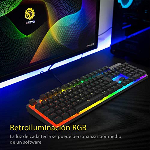 DREVO Tyrfing V2 105Key RGB Teclado Mecánico Gaming con Cable USB diseño Completo Programable Macro Soporte de Software Outemu Tactile Interruptor Marrón, QWERTY Distribución Español