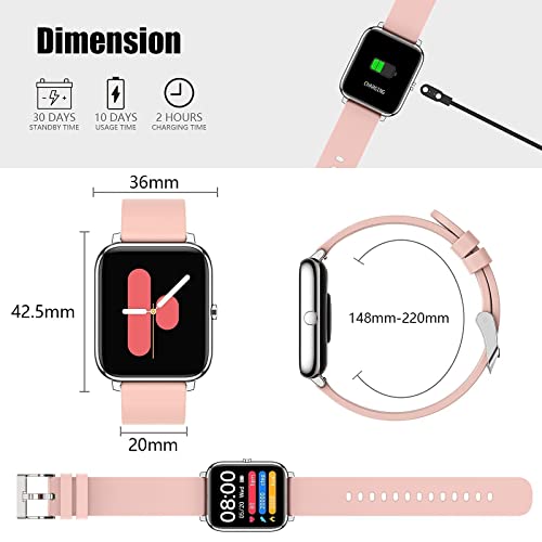 IDEALROYAL Smartwatch, Reloj Inteligente Mujer con Pulsómetro, Cronómetro, Calorías, Monitor de Sueño Podómetro Smart Watch IP67 Impermeable Reloj Deportivo para Android iOS