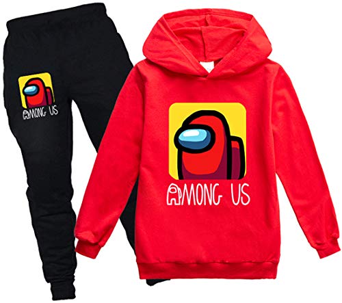 Chaos World Niños Sudadera con Capucha Among us Pantalones Traje Entre Nosotros(140,Rojo Negro)