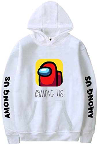 MINIDORA Among Us niños Sudadera con Capucha Negro Blanco Hoodies Casual Manga Larga Pullover Juego Sweatshirt(XL,34343,Blanco)