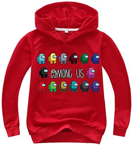 Silver Basic Tamaño de los Niños Sudadera Grabados Divertidos Videojuego Cosplay Ropa Impostor Sudadera Jersey Casual 160,Rojo5180-2