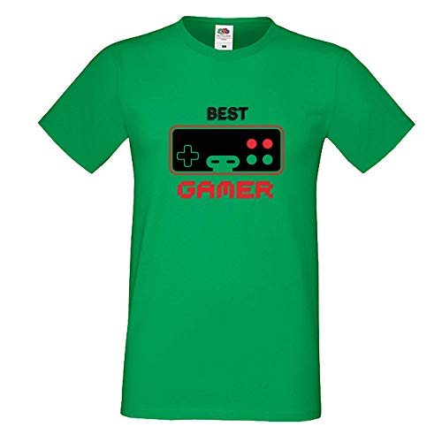 Gamer T-Shirt Best Gamer Old School Gamer PC Video Game (Green, XL)