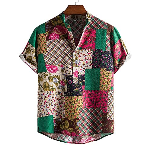 Shirt Hawaiana Hombre Verano con Estampado Vintage Hombre Camisa Transpirable con Botones De Cuello Kent Hombre Shirt Ocio Manga Corta Moderna Acampar Hombre Shirt Playa F-04 M