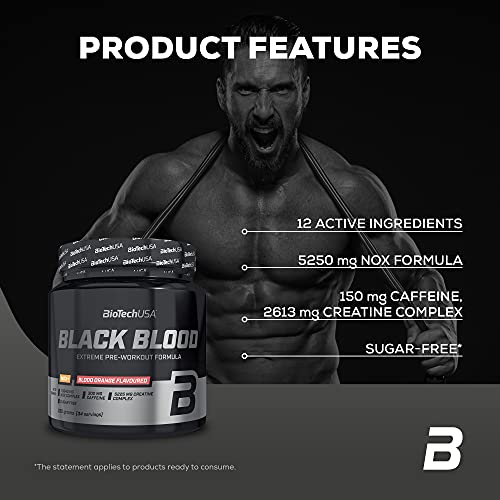 BioTech Black Blood NOX+ Aminoácidos Creatina, Sabor Naranja Sanguina - 330 gr