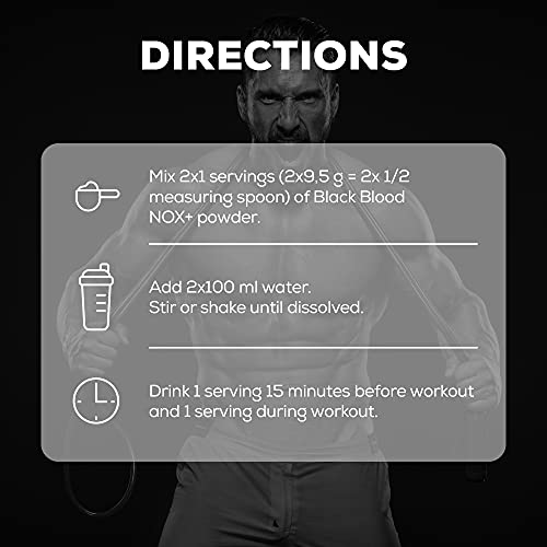 - Tomar 1 servicio (2 cucharas medidoras) de polvo mezclado con 100 ml de agua, 15 minutos antes del entrenamiento