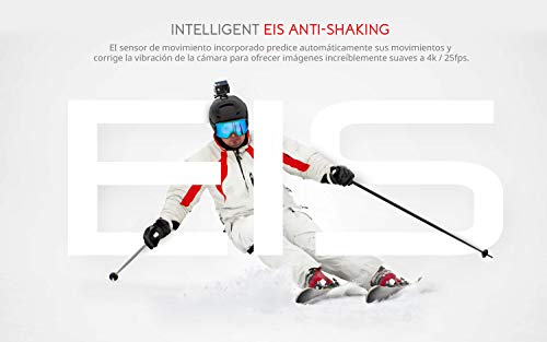 - ? Estabilización EIS y modos de grabación multifuncionales - Esta cámara deportiva tiene un programa antivibración y un soporte para casco / bicicleta que son perfectos para deportes extremos como saltar en paracaídas, esquiar, escalar, montar a caballo, etc. Varias funciones de grabación como grabación en bucle, grabación de lapso de tiempo, cámara lenta, disparador automático y ráfaga de fotos le brindan más opciones y más diversión mientras graba.