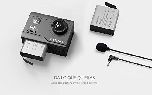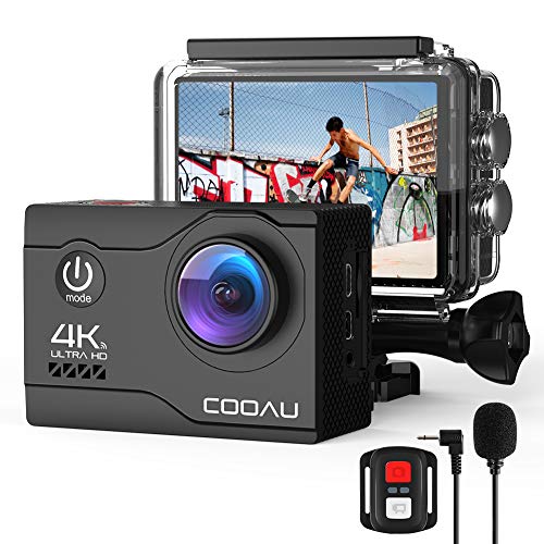 COOAU Cámara Deportiva 4K WiFi 20MP Camara Acción Sumergible Agua de 40M con Control Remoto y Micrófono Externo, Camara Acuática con 2 Baterías de 1200 mAh y Varios Kits para Bicicleta Casco Buceo (2)