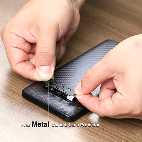 Ibywind Cristal Templado para Black Shark 4/4 Pro, [2 Piezas],con Metálico Protector de Lente de Cámara(Negro),Atrás Pegatina Protectora Fibra de Carbono, Kit de instalación fácil