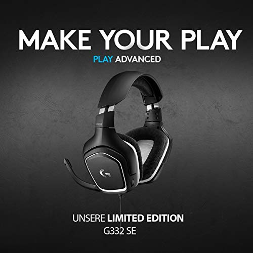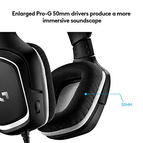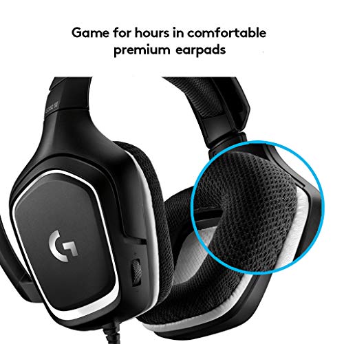 Logitech G332 Auriculares Gaming con Cable, Audio Estéreo, Transductores 50 mm, 3.5 mm Jack, Micrófono Volteable para Silenciar, Ligero, PC/Mac/Xbox One/PS4/Nintendo Switch, Negro/Blanco