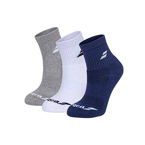 Babolat Quarter 3 Pairs Pack Calcetines, Unisex Adulto, White/Estate Blue/Grey, 39/42