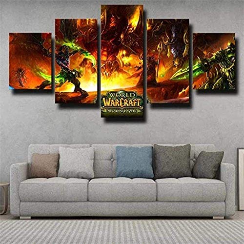 5 paneles de arte de pared póster sala de estar dormitorio decoración del hogar listo para colgar -Burning-Crusade-Burning-Kil'Jaeden-5 piezas pinturas en lienzo impresiones modernas imágenes enm