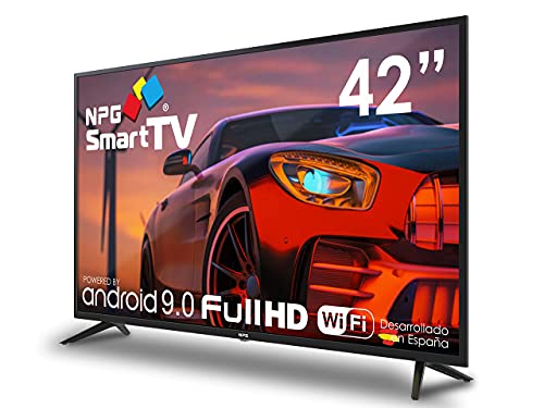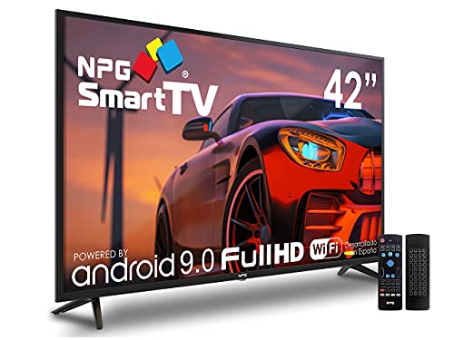 - TV LED 42″ Full HD 1080p Smart TV Android 9.0 + Smart Control un mando a distancia con doble función. Control de TV ( IR) + Control Smart TV inalámbrico 2.4GHz con función Air Motion y teclado Qwerty para aprovechar al límite tu televisor | DVB-T2 H.265, DVB-T HD (H.264), DVB-T SD (MPEG-2), DVB-C. Resolución: 1920×1080 Full HD. Relación de aspecto 16:9 | Tasa de refresco: 60Hz | Brillo: 200 cd/m²±10% | Relación Contraste: 4000:1 | Tiempo de respuesta: 8ms | Angulo de visión: 176H/176V.