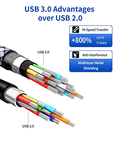 - 【Velocidad de transmisión estándar 3.0】 Admite la transferencia de datos a velocidades estándar de 5 Gbps 3.0, 10 veces más rápido que USB 2.0. Y compatible con dispositivos USB 2.0 y USB 1.1.