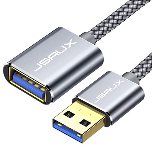 JSAUX Cable Alargador USB 3.0 [3M]Duradera Cable Extension USB Tipo A Macho a A Hembra Alta Velocidad 5 Gbps para Impresora,Ratón,Teclado,Hub,Pendrive,Mando de PS3,Disco Externo,Ordenad y Otros -Gris