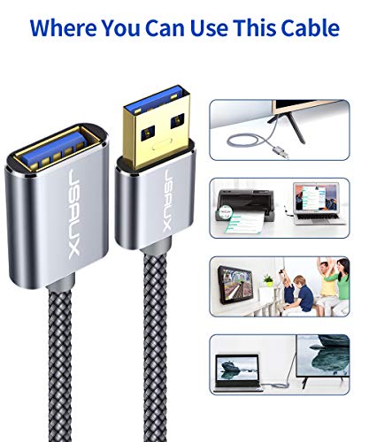 - 【Blindaje de señales de interferencia】 Gracias al blindaje multicapa y a los conectores de alta gama, el cable de extensión JSAUX USB3.0 evita la pérdida de señal y la interferencia electromagnética. La resistencia está integrada para garantizar una conductividad confiable y estabilidad de transmisión.