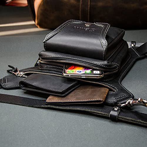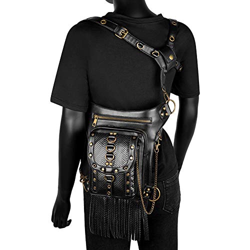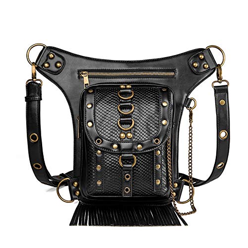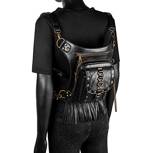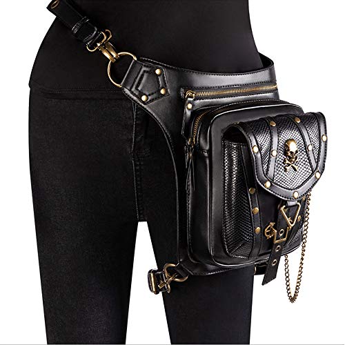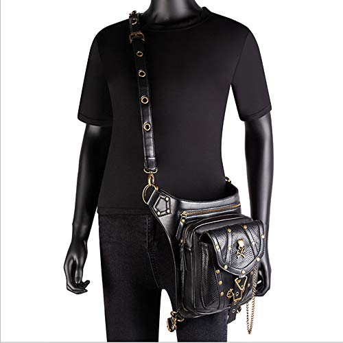 Nvshiyk Riñonera Vintage Crossbody Steampunk Bag Steam Punk Rock Hombro Bolsas Bolsas Paquetes Pierna Bolso para Ciclismo Camping (Color : Black, Size : 17x23cm)