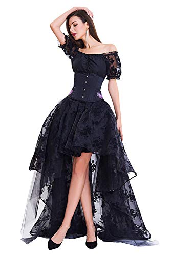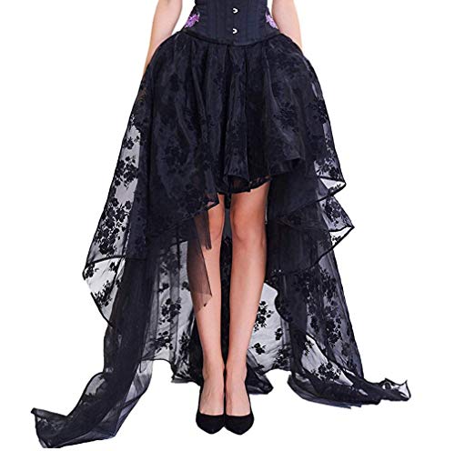 coswe - prenda de mujer, color negro, Irregular, estilo Steampunk, con gasa, para Cosplay