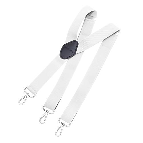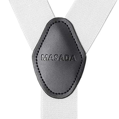 MASADA tirantes calidad fabricados a mano, con cierres de mosquetón resistentes y ajustes continuos con anchura de 3,5 cm para tallas de hasta 195 cm - Blanco