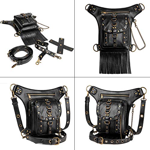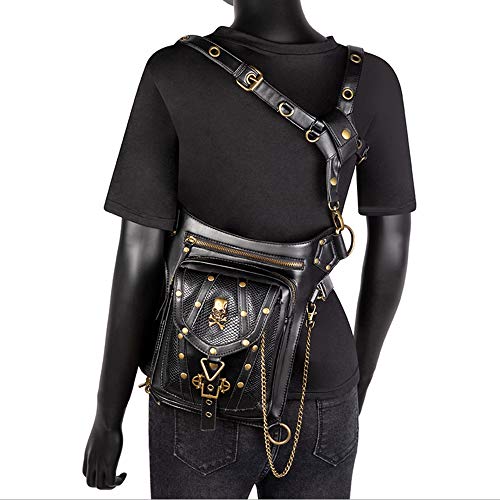 Segater Bolsa de cintura gótica Steampunk, bolsa de brazo de pierna caída, paquete de riñonera de cintura y hombro, bolsa de bolsa negra para senderismo al aire libre