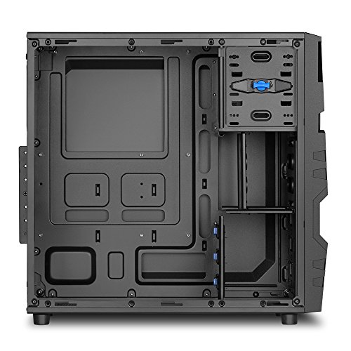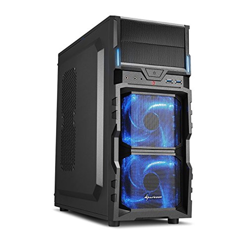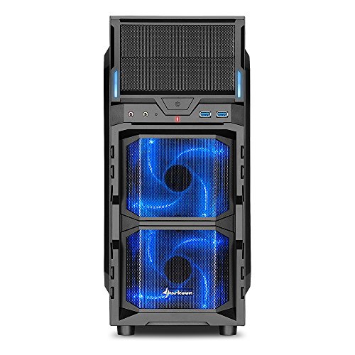 Sharkoon VG5-V - Caja de Ordenador Gaming (semitorre ATX, iluminación Azul, Incluye 2 Ventiladores LED, 2 bahías de 5,25”), Negro