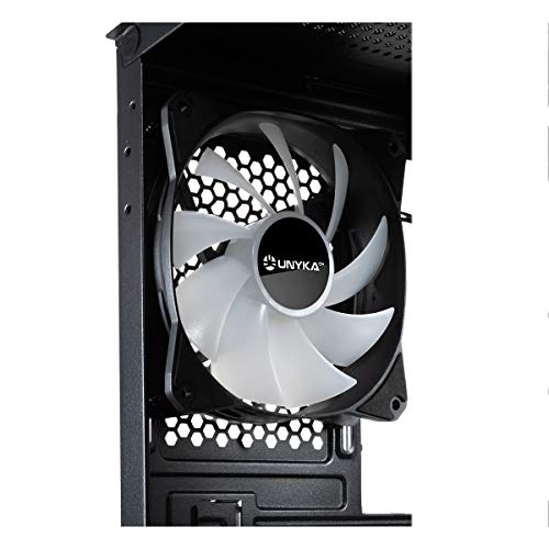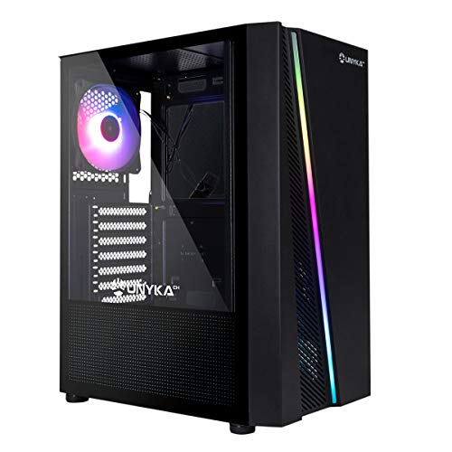 UNYKAch Caja Ordenador ATX GLAYZE Negra, Gaming, Frontal ARGB, Panel Lateral De Cristal Templado, 1 Ventilador RGB 120 mm, Sistema De Montaje Tool Less,1 x USB 3.0 y 2 x USB 2.0