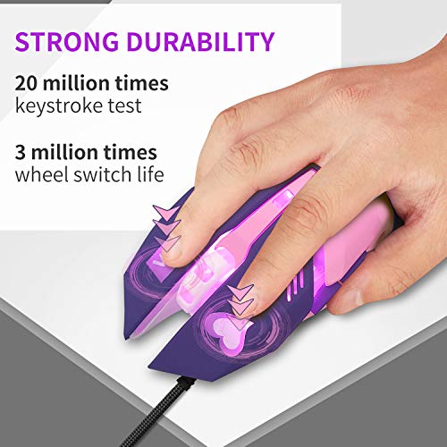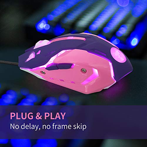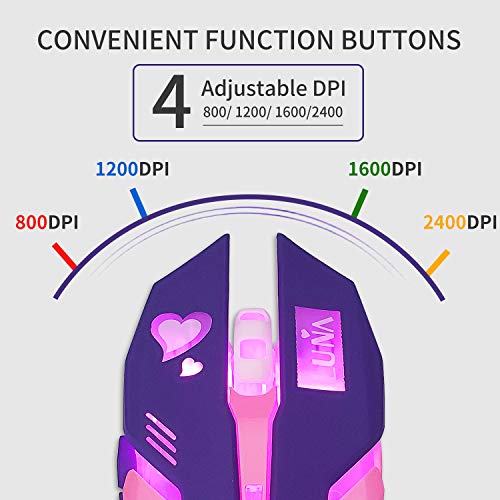 Ratón para Juegos, ratón óptico para Juegos con retroiluminación Rosa, ergonómico USB cableado con 2400 dpi y 6 Botones para 4 Disparos para computadora/Win/Mac/Linux/Andriod/iOS. (púrpura)